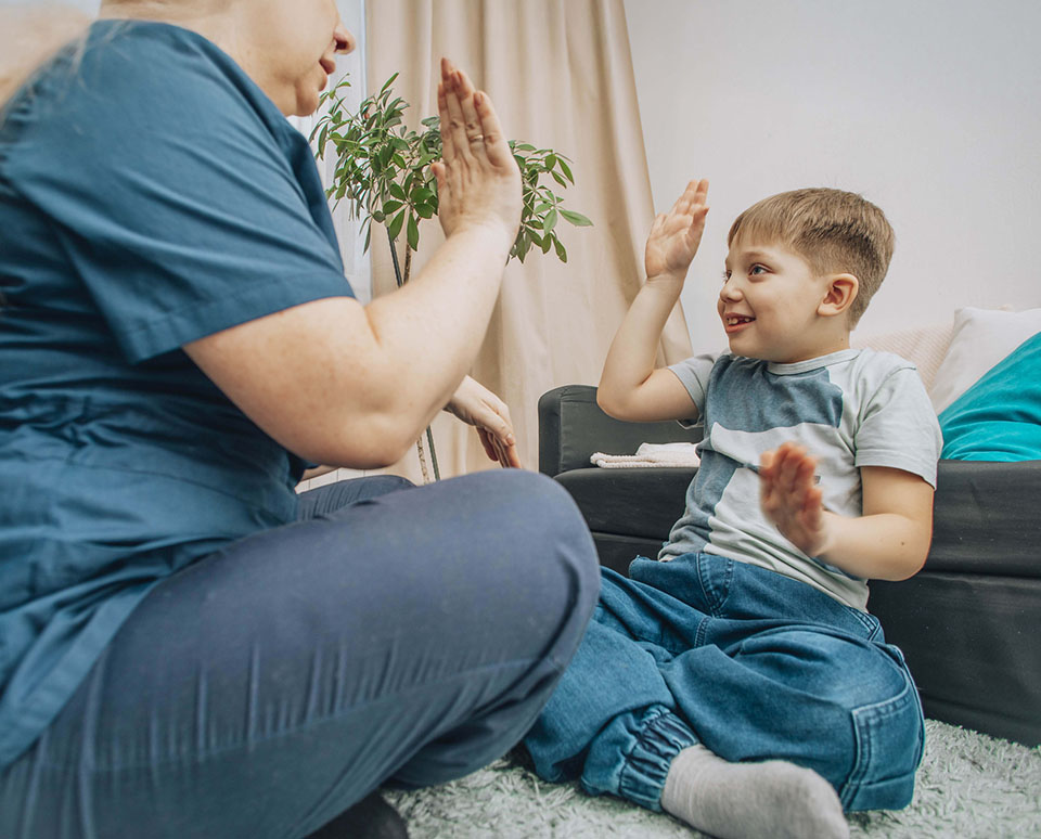 speech therapist engaging with young boy in nonverbal communication training, living room with warm decor, concept of education and cognitive skills development October 27, 2025 by Anne Hill